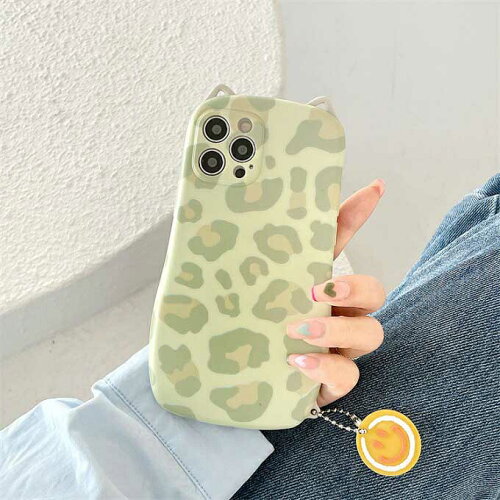 【メール便送料無料】≪大人気アニマルシリーズ≫握りやすいくびれた猫耳付きグリーンボディ♪大人女子にぴったりなオシャレなレオパード柄のにゃんこモチーフスマホケース iPhone7/8/SE 7/8Plus X/Xs XR XS Max iPhone11 11Pro 11Pro Max iPhone12 12mini 12pro 12Pro Max