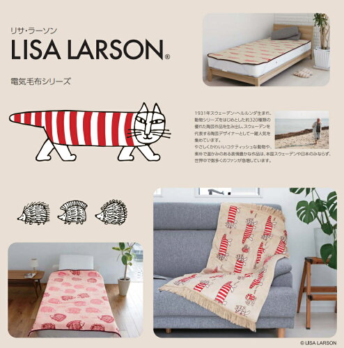 電気掛敷毛布 KDK-L109 リサ・ラーソン 電気毛布 約188cm×約130cm 人気の猫 マイキー柄 掛け敷き毛布【ギフトラッピング対応】【在庫限り】【在庫あり】